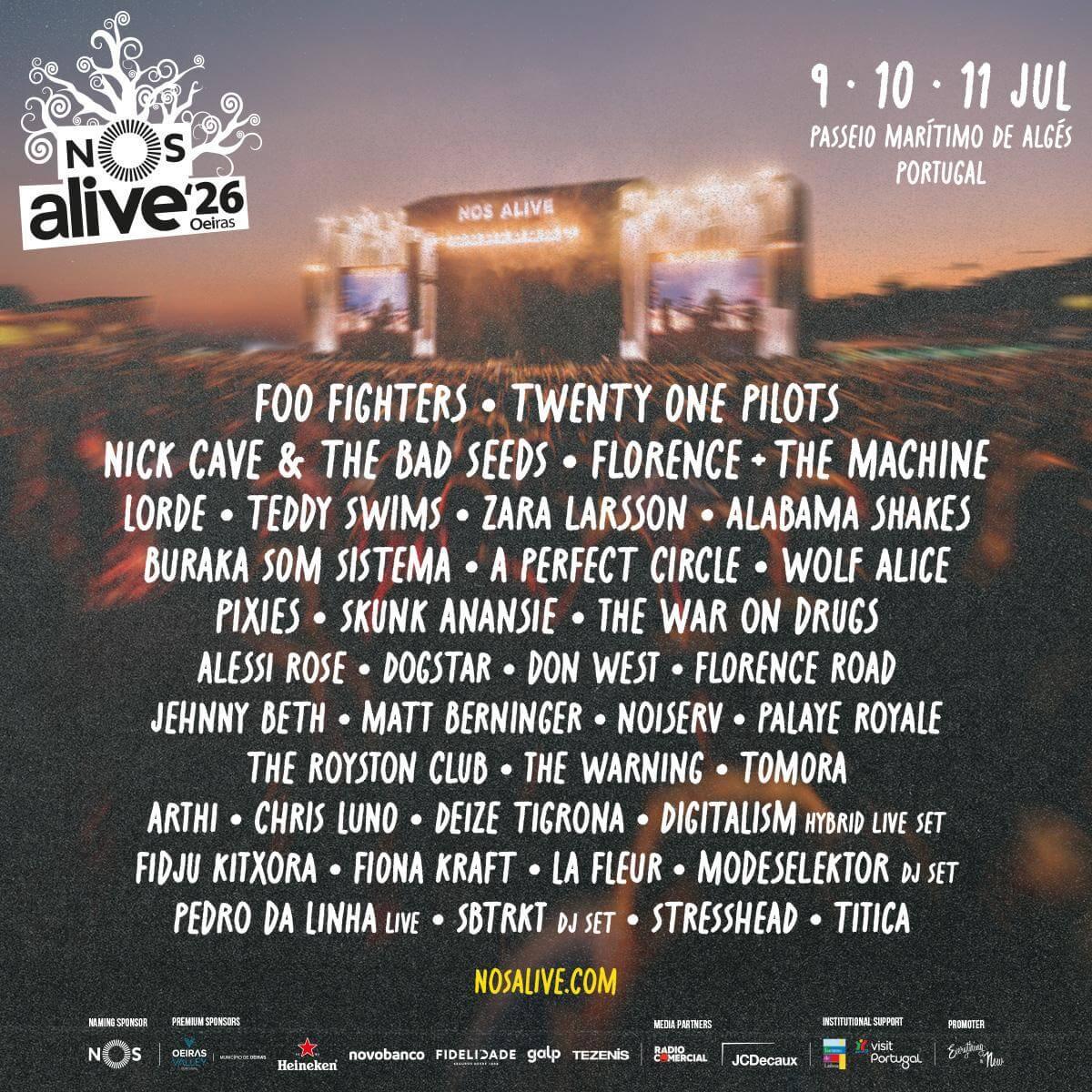 Nick Cave & The Bad Seeds encabezarán el primer día del NOS Alive 2026, el 9 de julio, en el icónico Palco NOS de Lisboa. La legendaria banda australiana regresa a Europa con una gira monumental que promete uno de los conciertos más esperados del festival.