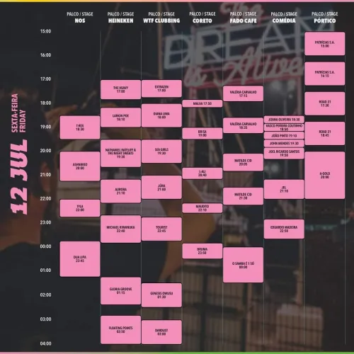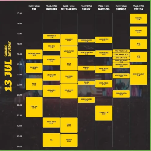 ¡Los horarios de NOS Alive 2024 ya están aquí! Este festival, que tendrá lugar del 11 al 13 de julio en el Passeio Marítimo de Algés, promete ser una experiencia inolvidable. Aquí te dejamos un resumen de los horarios de algunas de las actuaciones más destacadas: