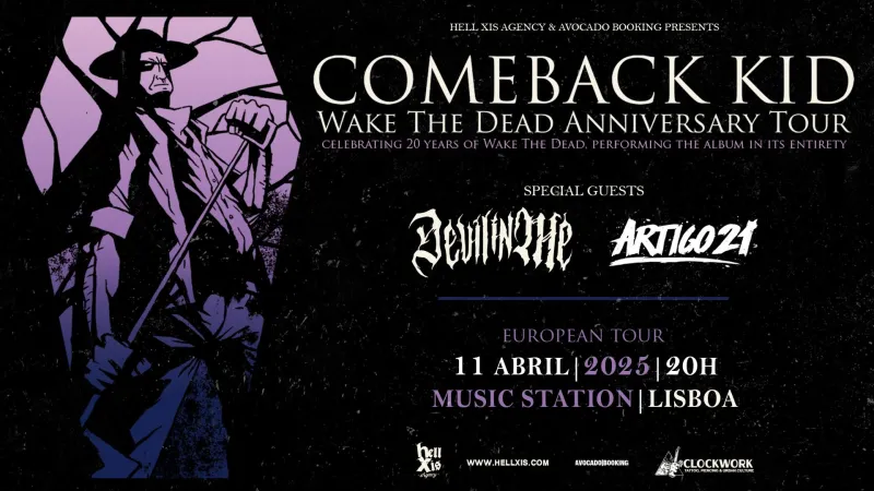 The promoter Hell Xis, in association with Avocado Booking, presents the return to Portugal of the legendary Comeback Kid, for an event that promises to be very special, for the 20th anniversary of the classic "Wake The Dead".