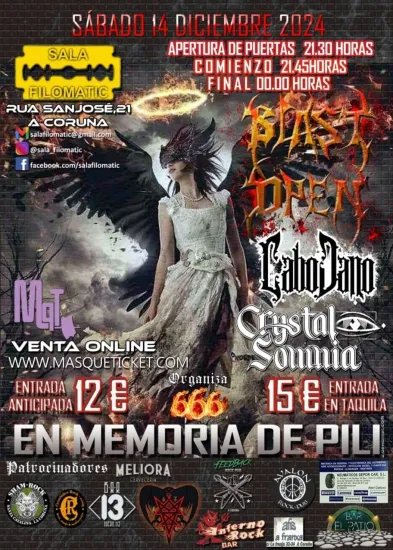 Aqui os presentamos este bolazo en memoria de nuestra gran amiga Pili q ya hace un tiempo q ya no esta entre nosotros con estas tres bandazas los asturianos Blast Open presentando nuevo disco y nueva formacion.