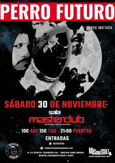 From the separation of the previous formation of the Bercians Autopía, who already passed through the Masterclub room with a resounding success of attendance, PERRO FUTURO is born, a new rock power trio with festival rock tints that will make the whole room stand up to dance and have a good time.