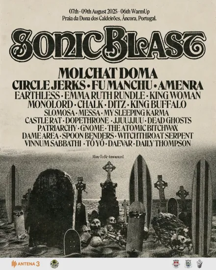 "With immense pride and excitement, we present the final lineup for SonicBlast Fest 2025. We’re thrilled to welcome the legendary Witchcraft, along with Heavy Trip, Maquinária, Inhuman Nature, Nerve Agent, Sunflowers, Nagasaki Sunrise, Bow or Nothing, Capela Mortuária, Overcrooks, and the Heavy Brothers DJ set!"
