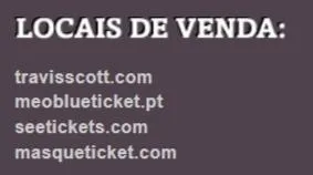 For added trust, check the website of Ritmos e Blues, the promoter of Travis Scott's shows in Portugal: https://ritmoseblues.pt/travisscott24/
