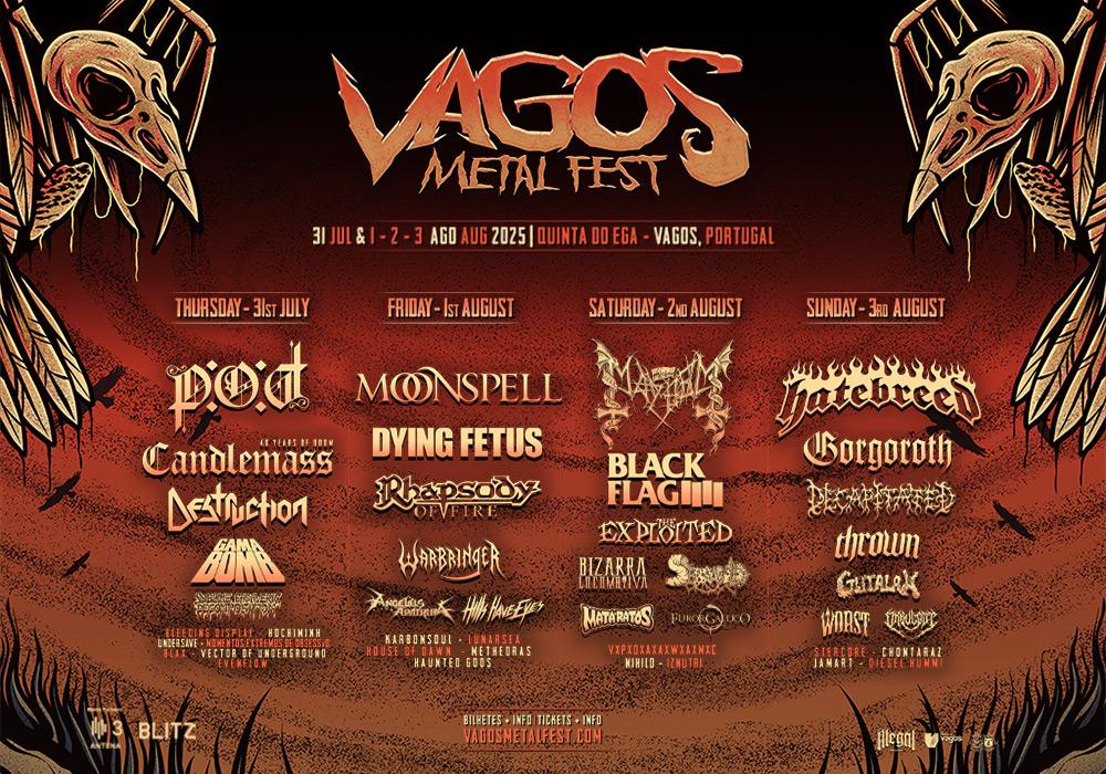 The eighth edition of Vagos Metal Fest is scheduled for July 31st and August 1st, 2nd and 3rd, 2025. Get ready for an epic experience in the metal capital, Quinta do Ega!