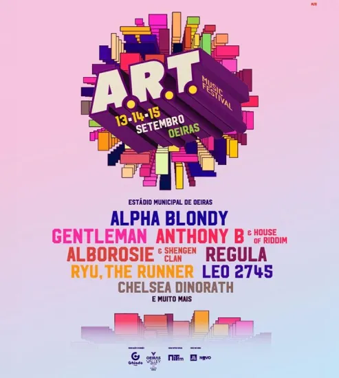 Producido por Grupo Chiado, en colaboración con el Ayuntamiento de Oeiras, A.R.T. Music Festival promete una experiencia única e inmersiva para los fans de los estilos musicales afro, reggae y trap, y pretende ser un referente en los próximos años, artistas como Alborosie & Shengen Clan, Alpha Blondy, Anthony B & House of Riddim, Chelsea Dinorath, Gentleman, Leo 2745, Regula y Ryu the Runner, entre muchos otros.
