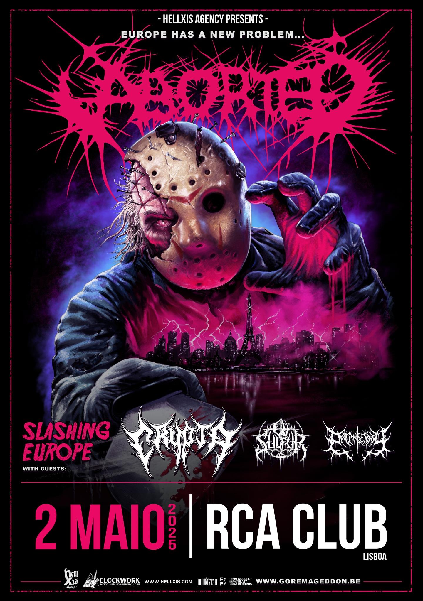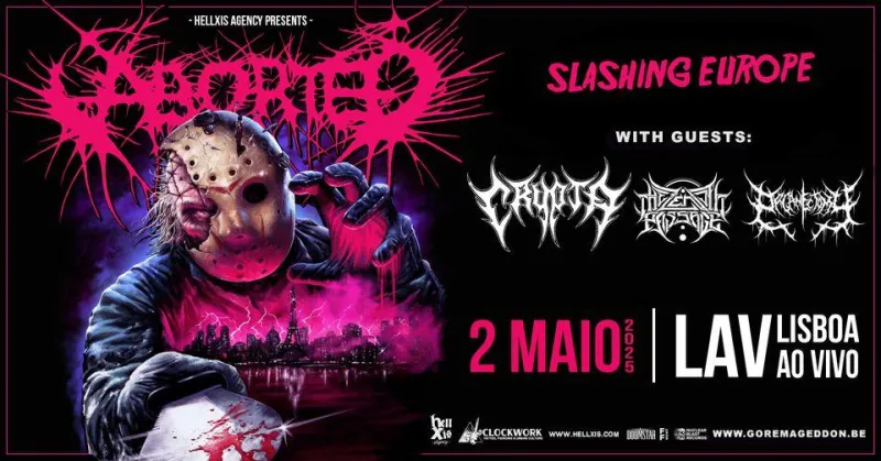 Prepárense para una brutalidad sin igual, Aborted llegan a Lisboa el 2 de mayo de 2025 para desatar el caos en su nueva gira europea. Creado en 1995, Aborted ofrece un sonido devastador de Death Metal técnico y emoción visceral como lo demuestran sus trabajos más recientes 'TerrorVision', 'Retrogore' y 'ManiaCult'.