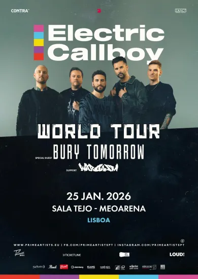 ELECTRIC CALLBOY acaba de reforzar el cartel para su esperado regreso a Portugal con dos grandes nombres, con las bandas británicas BURY TOMORROW y WARGASM subiendo al escenario de la Sala Tejo del MEO ARENA, en Lisboa, la noche del 25 de enero de 2026, como invitados especiales y banda de apertura, respectivamente.