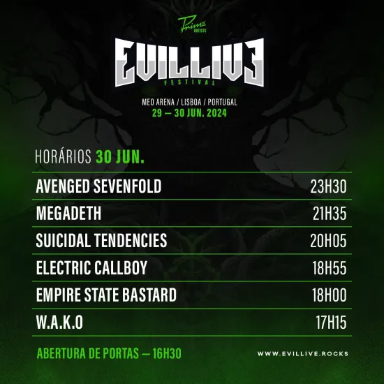 Después de una edición inaugural muy exitosa, y con 2024 previsto como un año que será de consolidación y crecimiento, EVIL LIVƎ FESTIVAL regresa al MEO Arena, Lisboa, los días 29 y 30 de junio.