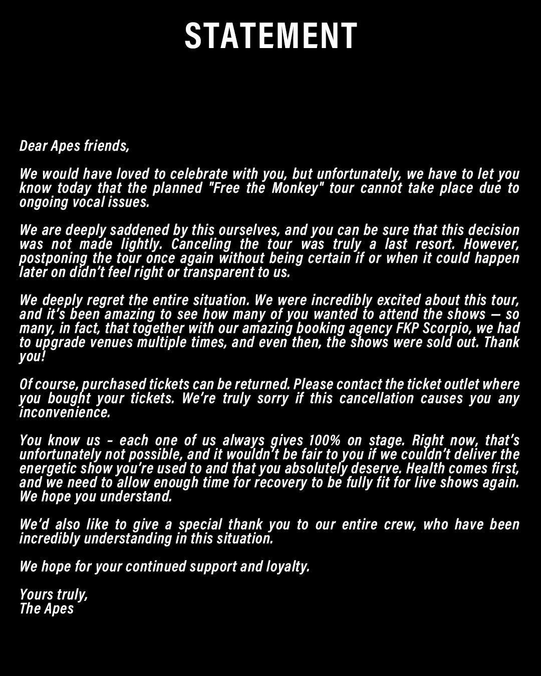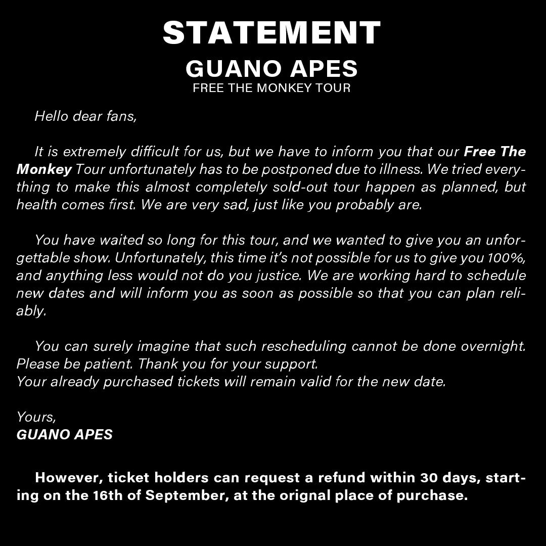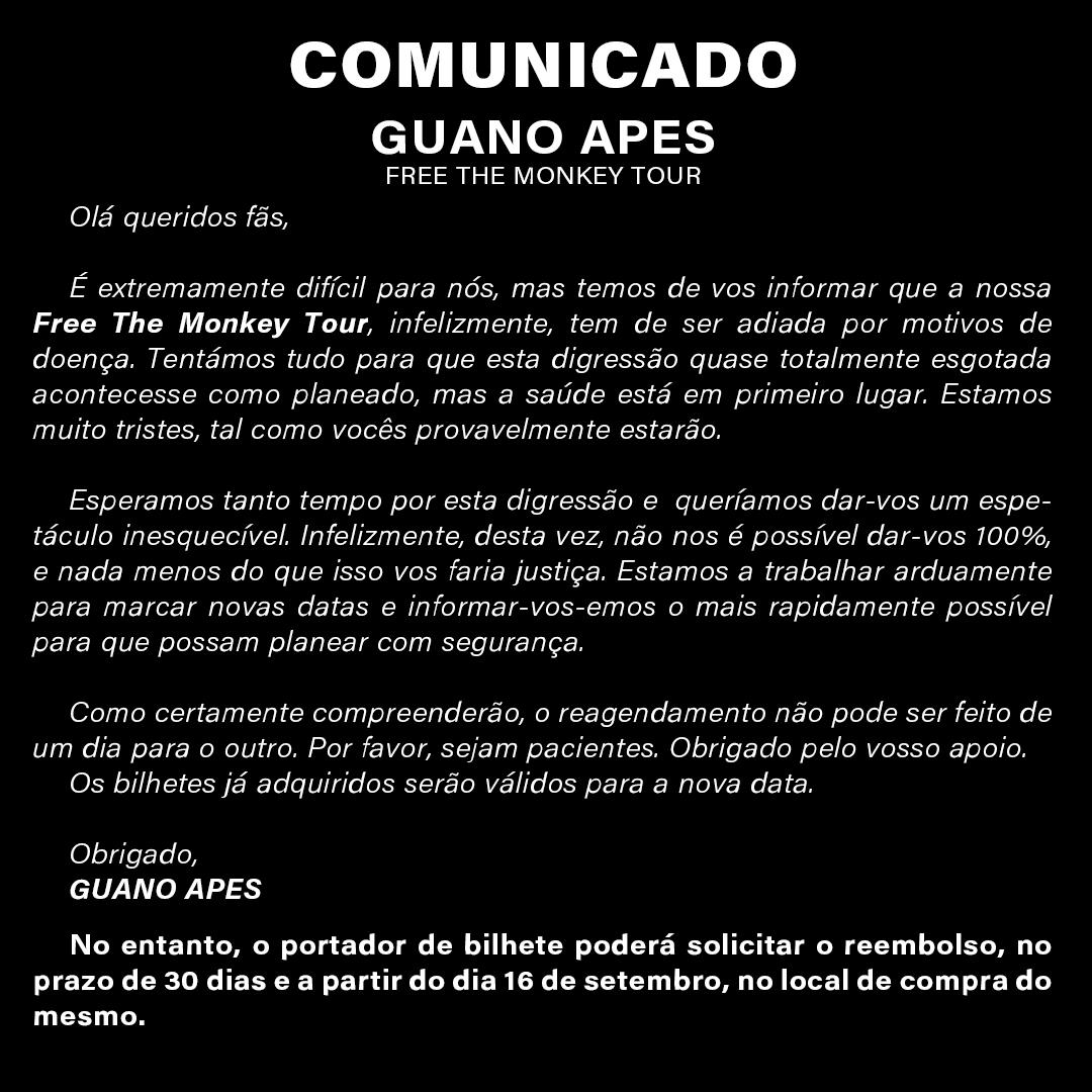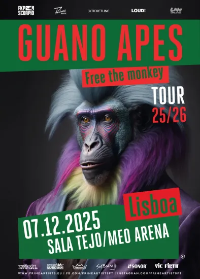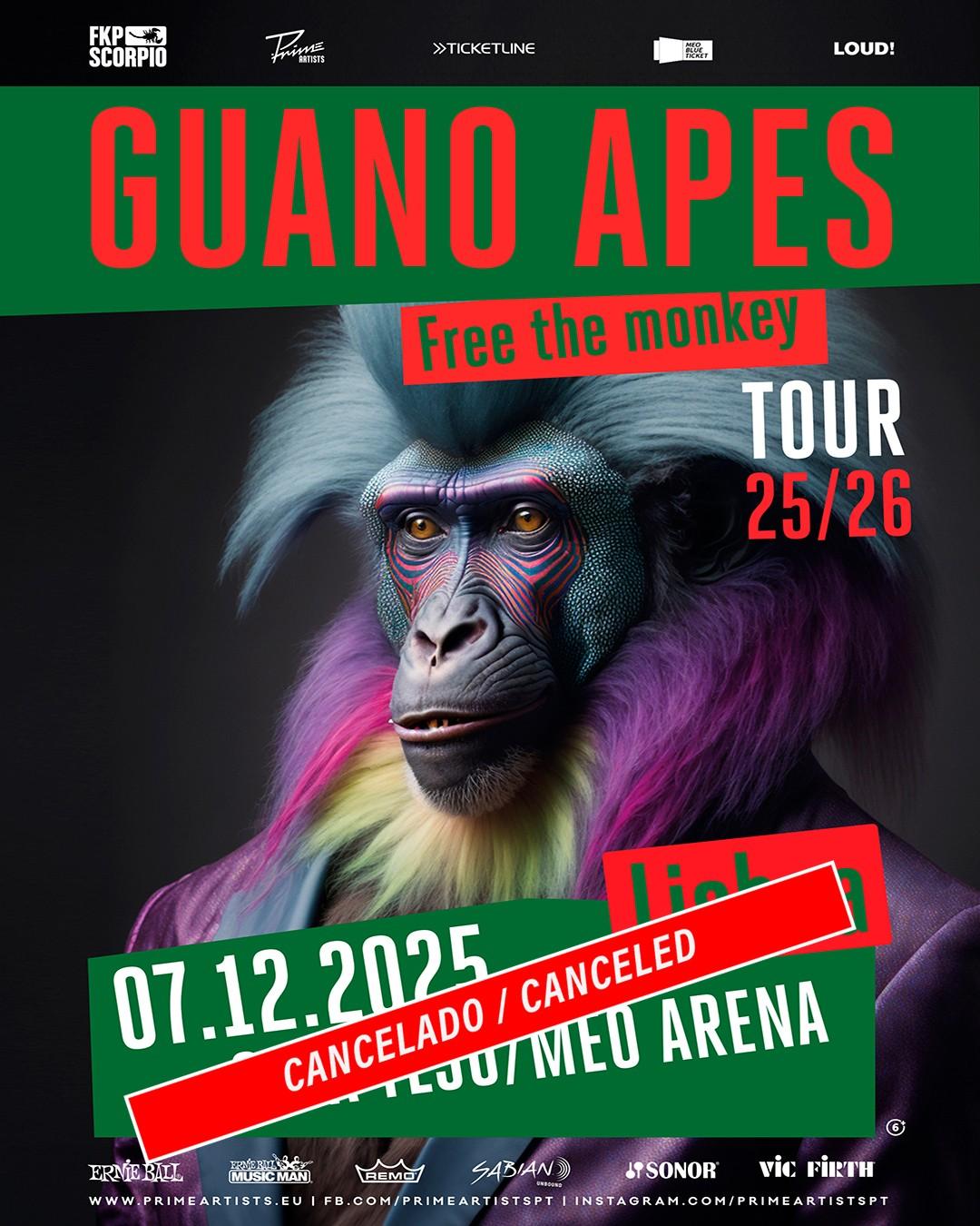 El “Free Your Monkey Tour 2025 – 2026” de Guano Apes, que tenía previsto llegar a Lisboa, Sala Tejo, el 7 de diciembre, ha sido cancelado por motivos de salud.
