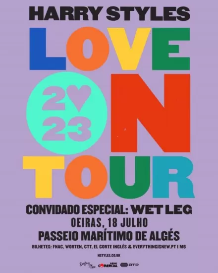 Harry Styles estuvo en concierto en Portugal con su gira 'Love on Tour', el 18 de julio de 2023 en el Passeio Marítimo de Algés, con Wet Leg a cargo de la primera parte del show.