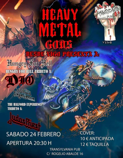 Un brutal concierto con las bandas madrileñas Halford Experience interpretando los clásicos temas de los Judas + Hungry For Hell que harán un repaso por la historia de DIO en todas sus épocas (Black Sabbath, Rainbow y DIO).