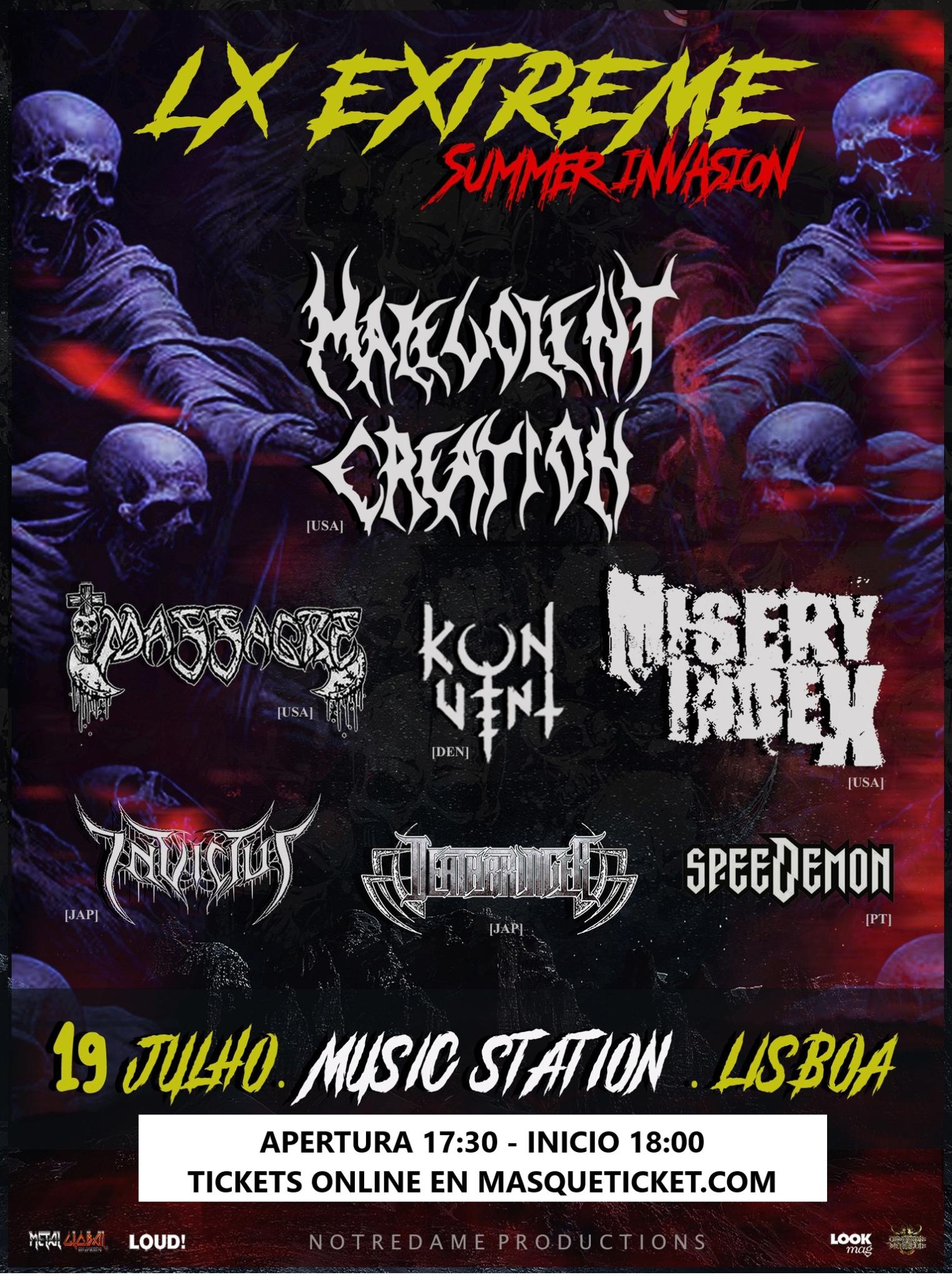 MALEVOLENT CREATION (USA) - MISERY INDEX (USA) - MASSACRE (USA) - KONVENT (DEN) - SPEEDEMON (PT) - DEATHBRINGER (Polonia/Bielorrusia) y los japoneses INVICTUS.