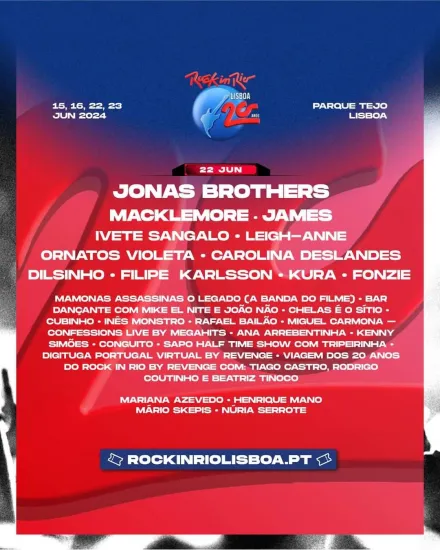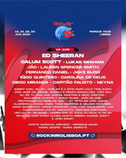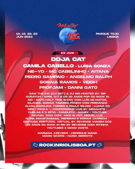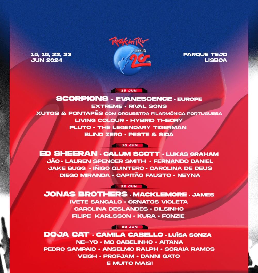 20 años después del debut de Rock in Rio Lisboa en Portugal, la conmemoración de este aniversario tendrá lugar en el Parque Tejo Lisboa, en la que se espera que sea una edición histórica.