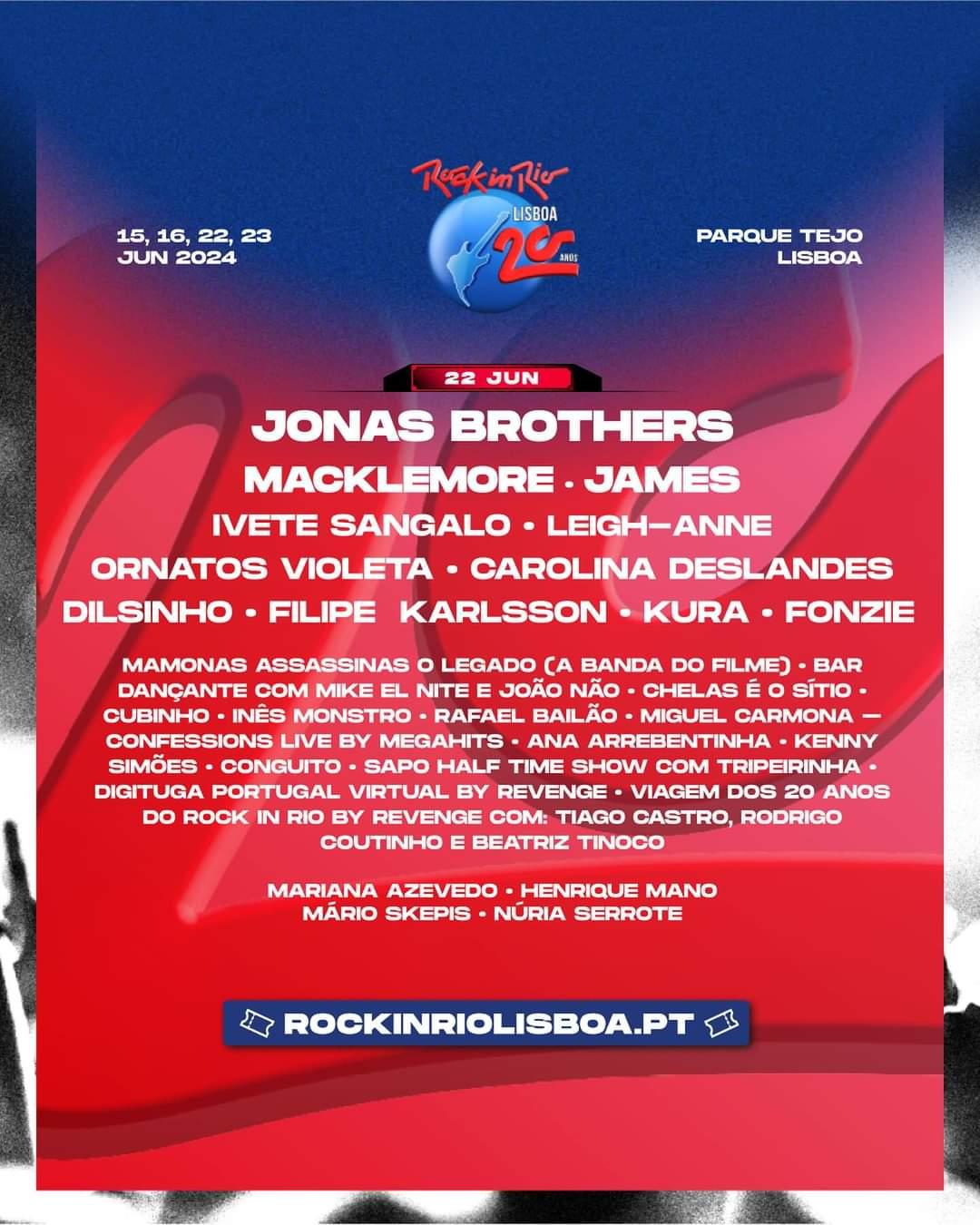 22/06: JONAS BROTHERS, MACKLEMORE, IVETE SANGALO, CAROLINA DESLANDES, JAMES