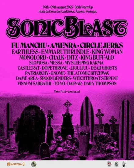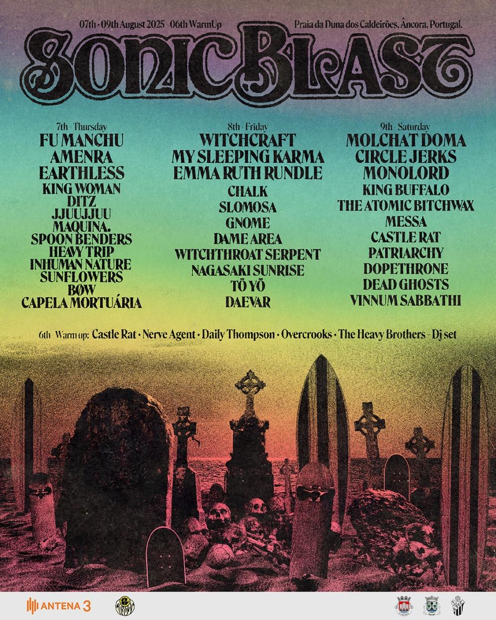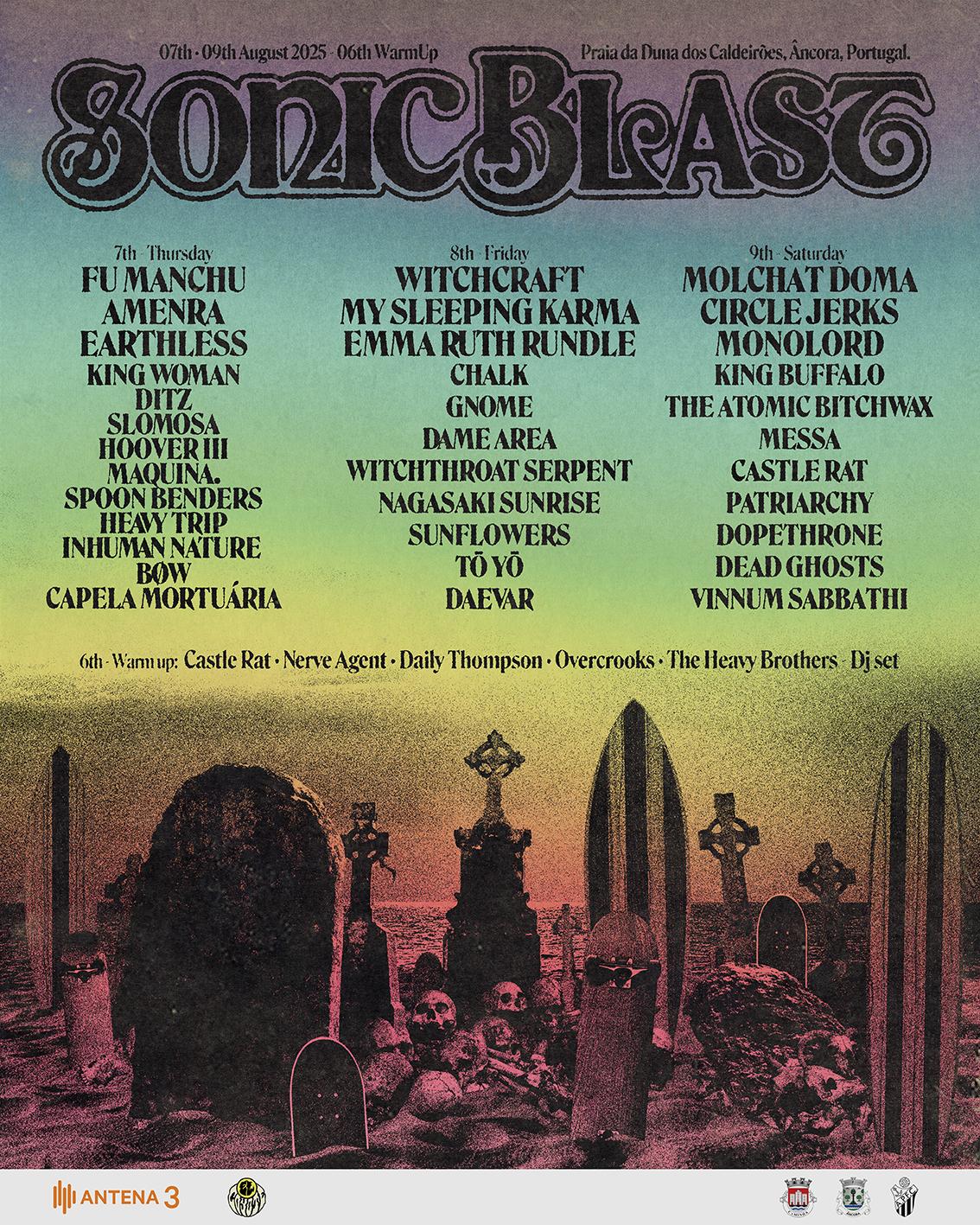 "Con inmenso orgullo y entusiasmo presentamos el cartel final del SonicBlast Fest 2025. Estamos muy emocionados de dar la bienvenida a los legendarios Witchcraft, junto a Heavy Trip, Maquinária, Inhuman Nature, Nerve Agent, Sunflowers, Nagasaki Sunrise, Bow or Nothing, Capela Mortuária, Overcrooks y el DJ set de Heavy Brothers!"