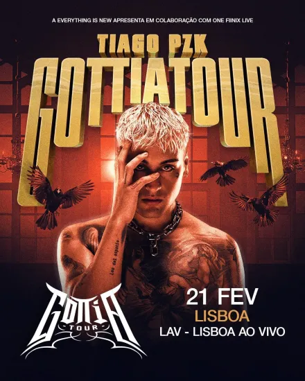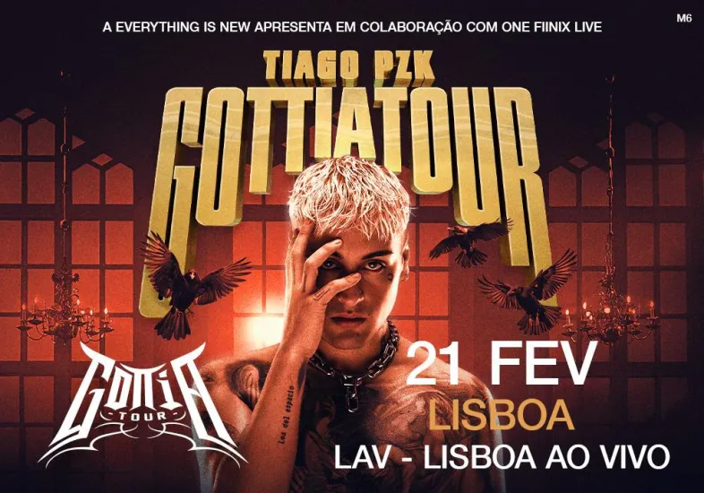 Tiago PZK, el innovador artista urbano argentino, acaba de anunciar su gira mundial, que incluye un concierto en Lisboa, en la sala LAV – Lisboa Ao Vivo, el día 21 de febrero de 2025.