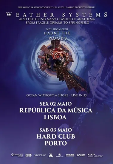 Y aquí tenéis otro regalo para vosotros! Los días 2 y 3 de mayo de 2025 tendremos el honor de recibir a Weather Systems en Lisboa y Oporto. El nuevo proyecto de Daniel Cavanagh, ex-Anathema, también cuenta con la participación de Daniel Cardoso (también ex-Anathema) y Soraia Silva (Needle). En directo, André Marinho (In Chaos) actuará en directo. Weather Systems presentará, además de temas originales de su álbum debut "Ocean Without a Shore", que saldrá en septiembre de 2024, parte del repertorio de Anathema.